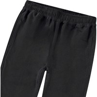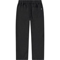 Schwarze Leinenhose mit elastischem Bund und innenliegendem Kordelzug. Die Hose hat seitliche Taschen und eine lockere Passform.