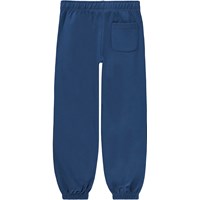 Ams ist eine dunkelblaue Jogginghose aus Öko-Baumwolle. Die Hose hat Gummizug in der Taille und an den Beinen, sowie Taschen auf beiden Seiten und eine einzelne aufgesetzte Gesäßtasche.