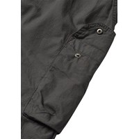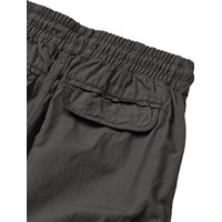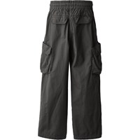 Graue Cargohose aus strapazierfähiger Öko-Baumwolle mit elastischem und verstellbarem Kordelzug in der Taille für optimalen Komfort. Das Modell hat schräge Vordertaschen und geräumige Cargotaschen an der Seite, die ideal für kleine Gegenstände unterwegs sind. Der lockere Schnitt bietet gute Bewegungsfreiheit und einen entspannten Alltagslook.