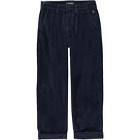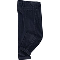 Schwarze Hose aus geripptem Samt. Diese Hose ist aus 100% Baumwolle, hat Seitentaschen, zwei Bundfalten vorne, Hintertaschen und eine loosere Passform. Die Taille kann mit einem innen verstellbaren Gummiband angepasst werden, sodass es für alle Kinder perfekt passt. Die Größen 92-134 haben Druckknöpfe, sodass die Hose leicht an- und auszuziehen ist - die Größen 140-176 haben normale Hosenknöpfe.
