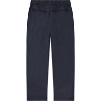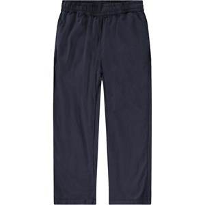 Dunkelblaue Hose aus Öko-Baumwolle. Diese Hose hat Taschen an den Seiten, Gesäßtaschen, einen elastischen Bund mit einem innenliegenden Kordelzug, der dafür sorgt, dass sie den ganzen Tag gut sitzt und angenehm zu tragen ist. Aster hat eine reguläre Passform.