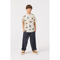 Dunkelgraue Hose aus Öko-Baumwolle. Diese Hose hat Taschen an den Seiten, Gesäßtaschen, einen elastischen Bund mit einem innenliegenden Kordelzug, der sicherstellt, dass sie den ganzen Tag gut sitzt und angenehm zu tragen ist. Aster hat eine reguläre Passform.