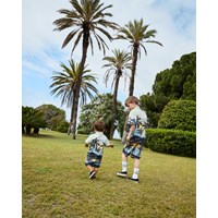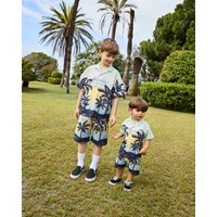 Shorts aus Öko-Baumwolle. Diese Shorts haben einen elastischen Bund, lockere Passform und Palmenmuster. Für ein komplettes Outfit kombinieren Sie sie mit einem passenden Hemd.