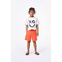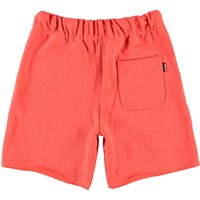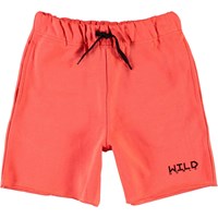 Adian sind ein Paar neonrote Sweatshorts mit dem Text 'Wild world' auf dem einen Beinende. Die Shorts haben eine elastische Taille mit Bindeband.