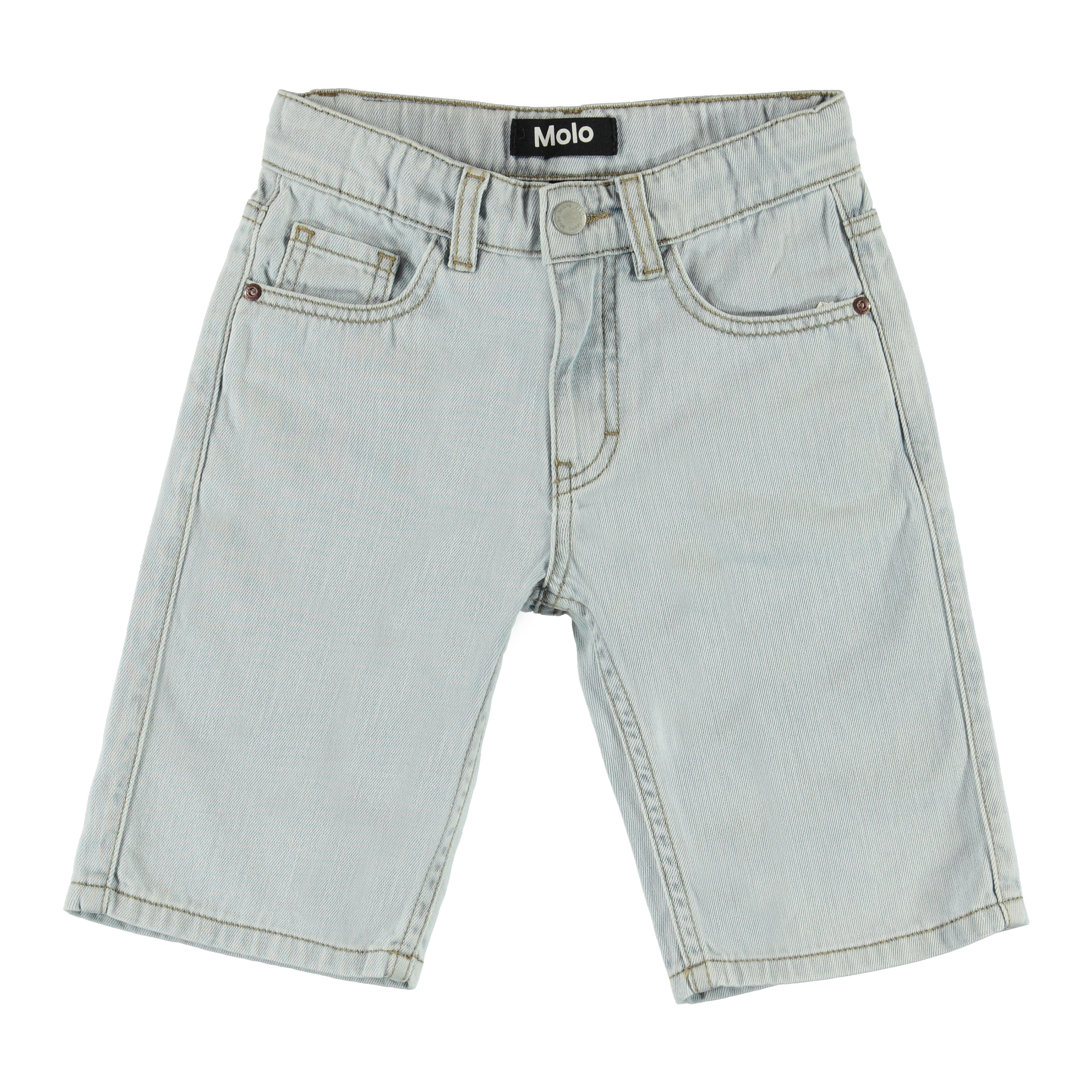 Adirk ist eine hellblaue Jeansshorts mit extra Länge. Adrik hat Vorder- und Rücktaschen.