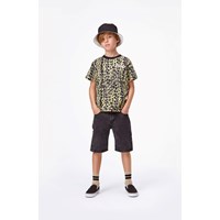 Adirk sind ein Paar verwaschene schwarze Denim-Shorts mit extra Länge. Adrik hat Taschen vorne und hinten.