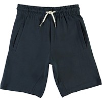 Aliases sind ein Paar dunkelblaue Sweatshorts mit elastischer Taille und weißem Bindeband. Die Shorts sind weich und angenehm den ganzen Tag zu tragen.    Ecocert Greenlife, certifikationsnr. 197496.