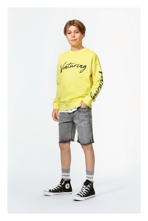 Alons ist eine gewaschene Jeansshorts in Blau mit abgeschnittener Kante sowie einem abgenutztem look auf der Vorderseite, er einen raw-look verleiht. Die Shorts hat Stretch und ist daher angenehm zu tragen.