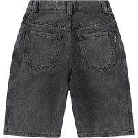 Lange Jeans-Shorts in Schwarz aus Öko-Baumwolle. Die Shorts haben eine lockere, weite Passform, die bis zum Schienbein reicht, und sie verfügen über praktische Seitentaschen und Gesäßtaschen.