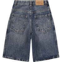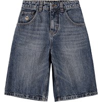 Blaue Jeansshorts aus Bio-Baumwolle mit einem entspannten und weiten Schnitt. Die Shorts reichen knapp über das Knie, haben fünf Taschen und einen verstellbaren elastischen Bund für optimalen Sitz. Die kleinsten Größen (92-134) haben einen praktischen Druckknopf, während die Größen 140-176 mit einem klassischen Jeansknopf ausgestattet sind.