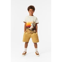Ockerfarbene Shorts aus Öko-Baumwolle. Die Shorts haben einen elastischen Bund mit innenliegenden Zugbändern und eine reguläre Passform.