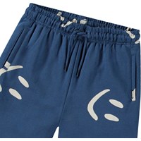 Shorts aus Öko-Baumwoll-Jersey. Die Shorts sind knielang, haben Taschen vorne und haben eine lockere Passform mit einem elastischen Bund, was sie angenehm zu tragen macht. Die Shorts sind blau mit einem Aufdruck von lächelnden Gesichtern. Für ein komplettes Outfit kombinieren Sie sie mit einem passenden Sweatshirt.
