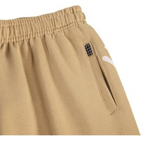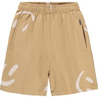 Beige Shorts aus weichem, ökologischem Baumwolljersey mit einem Druck von lächelnden Gesichtern. Das Modell hat einen elastischen Bund mit verstellbarem Kordelzug, Seitentaschen und eine lockere, entspannte Passform.