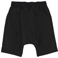 Anders sind ein Paar schwarze Sweatshorts mit lockerem Passform. Die Shorts haben eine elastische Taille und Taschen vorne. Ecocert Greenlife, certifikationsnr. 197496.