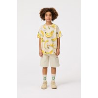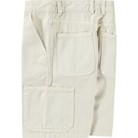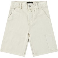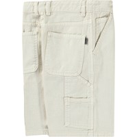 Weiße Baumwollshorts mit Arbeitskleidungsdetails. Diese Shorts sind praktisch und haben viele Taschen, sowohl an den Seiten als auch entlang der Beine. Sie haben eine lockere Passform und können an der Taille mit einem internen Gummizug angepasst werden, um eine perfekte Passform für alle Kinder zu gewährleisten. Größen 92-134 haben Druckknöpfe für einfaches An- und Ausziehen, während Größen 140-176 einen regulären Jeansknopf haben.