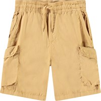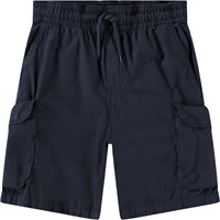 Dunkelblaue Cargoshorts aus Öko-Baumwolle. Diese Shorts haben einen elastischen Bund, einen innenliegenden Kordelzug und eine reguläre Passform. Sie verfügen außerdem über Gesäßtaschen, Seitentaschen und eine Tasche an jedem Oberschenkel.