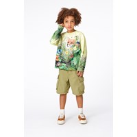 Argod ist eine moosgrüne, knielange Shorts aus 100% Baumwolle. Diese Cargo-Shorts haben einen breiten elastischen Bund mit Bindeband, Seiten- und Gesäßtaschen, Cargotaschen an den Oberschenkeln und eine lockere Passform.