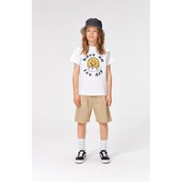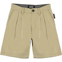 Arley ist eine beige Shorts mit Falten. Arley hat Seitentaschen und zwei Hintertaschen.