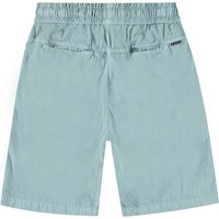Hellblaue Shorts aus Öko-Baumwolle. Die Shorts haben einen breiten elastischen Bund mit einem innenliegenden Kordelzug, Taschen an den Seiten und hinten sowie eine reguläre Passform.
