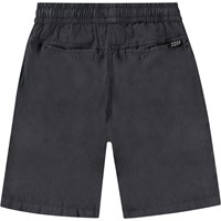 Dunkelgraue Shorts aus Öko-Baumwolle. Die Shorts haben einen breiten elastischen Bund mit einem internen Kordelzug, Taschen an den Seiten und hinten sowie eine reguläre Passform.