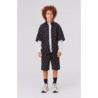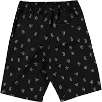 Avart ist ein Paar schwarze Shorts mit Aufdrucken verschiedener kleiner weißer Handzeichen. Die Shorts haben einen elastische Bund. Kombinieren Sie die Shorts mit dem passenden Shirt.