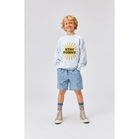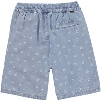 Avart ist eine hellblaue Jeansshorts mit einem Aufdruck aus kleinen Smileys. Die Shorts haben einen elastischen Bund und Taschen an den Seiten. Kombinieren Sie die Shorts mit dem passenden Shirt, Richie.