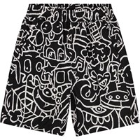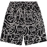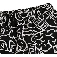 Schwarze knielange Shorts aus weicher, ökologischer Baumwolle mit einem künstlerischen und fantasievollen Druck. Die Shorts haben einen elastischen Bund, Seitentaschen, eine Gesäßtasche und eine entspannte, lockere Passform.