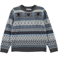 Barri ist ein Strickpullover in Grau und Blau, inspiriert von den traditionellen isländischen Pullovern.