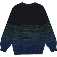 Bunter Pullover aus Baumwolle und Wolle gestrickt. Ein klassisches Design mit Rundhalsausschnitt, gerippten Kanten und lockerer Passform.