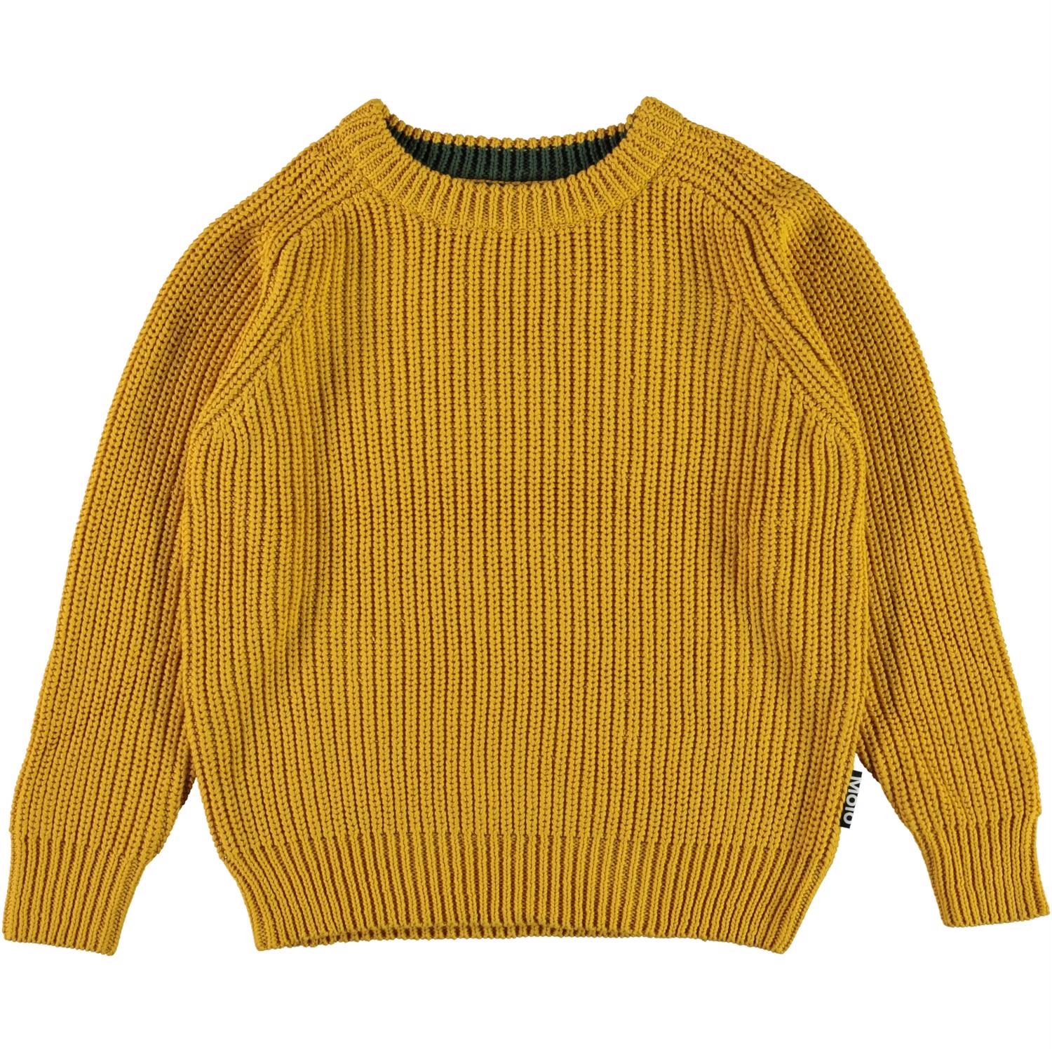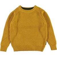 Bosse Baumwolle Strickpullover in senfgelb. Der Pullover hat feine Strickmuster.