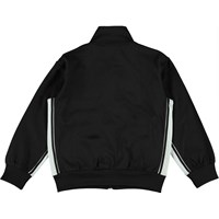 Maboc ist eine schwarze Trainingsjacke mit weißen Details an den Seiten. Die Jacke hat Reißverschlusstaschen und einen Verschluss vorne.