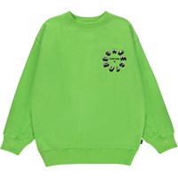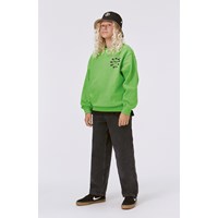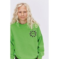 Frisches grünes Sweatshirt mit schwarz-weißem Grafikdruck. Der Druck sendet die Botschaft „Everything is Connected“. Dieses Sweatshirt besteht aus 100% Baumwolle, hat einen Rundhalsausschnitt mit Rippbündchen, Rippbündchen an Hüfte und Ärmeln und eine normale Passform.