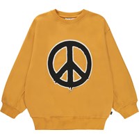Gelbes Sweatshirt mit großem Peace-Zeichen-Frontprint. Der Druck ist von Skatern und der Graffiti-Kultur inspiriert, und Du kannst sehen, dass es noch nicht lange hier ist, dass das Peace-Zeichen gemalt wurde, da die Farbe noch ein wenig verläuft. Dieses Sweatshirt besteht aus 100% Baumwolle, hat einen Rundhalsausschnitt mit Rippbündchen, Rippbündchen an Hüfte und Ärmeln und eine normale Passform.