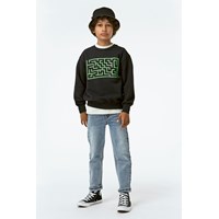 Finden Sie Ihren Weg durch das grüne Labyrinth auf der Vorderseite des Sweatshirts Mann. Mann ist ein schwarzes Sweatshirt mit Rippkante unten, und an den Ärmelenden.