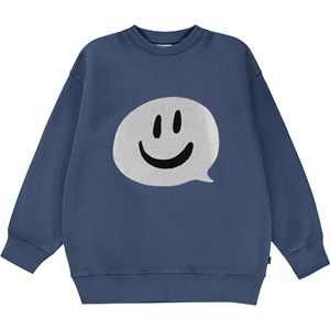 Blaues Sweatshirt mit großer Frontstickerei. Die weiß-schwarze Stickerei ist eine große Sprechblase, die lustigen Dinge sagt. Dieses Sweatshirt besteht aus 100% Baumwolle, hat einen Rundhalsausschnitt mit Rippbündchen, Rippbündchen an Hüfte und Ärmeln und eine lockere Passform.Kombiniere das Sweatshirt mit der gleichfarbigen Hose Adan für das perfekte Set.