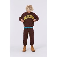 Bordeauxrotes Sweatshirt mit großer Frontstickerei. Die blau-gelbe Stickerei hat uns die Botschaft der "Freedom" geschickt. Dieses Sweatshirt besteht aus 100% Baumwolle, hat einen Rundhalsausschnitt mit Rippbündchen, Rippbündchen an Hüfte und Ärmeln und eine lockere Passform.Kombiniere das Sweatshirt mit der gleichfarbigen Hose Adan für das perfekte Set.