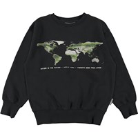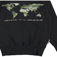 Mattis ist ein schwarzes Sweatshirt mit einem Druck der Erdkugel von oben und dem Text "Nature ist the future".