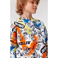 Mattis ist ein Sweatshirt mit dem mehrfarbigen Sprühdosendruck "Make Ur Mark". Mattis hat Ripp am Hals, Handgelenk und Hüfte.