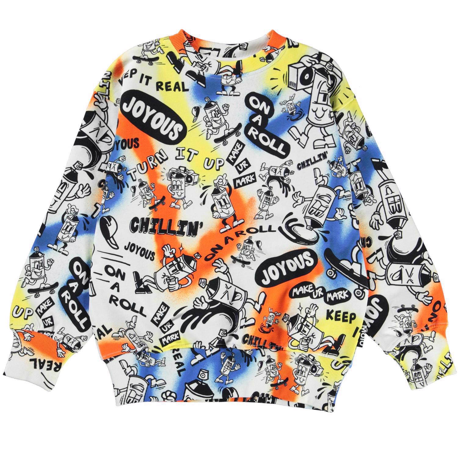 Mattis ist ein Sweatshirt mit dem mehrfarbigen Sprühdosendruck "Make Ur Mark". Mattis hat Ripp am Hals, Handgelenk und Hüfte.