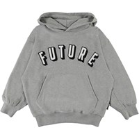 Maxx ist ein grauer Hoodie mit 'Future' auf der Brust. Der Pullover hat Ärmel mit einer guten Breite.
