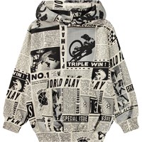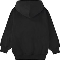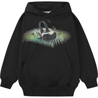 Schwarzer Hoodie aus Öko-Baumwolle mit Kapuze, Kängurutasche, gerippten Abschlüssen und einer gebürsteten Innenseite, die ihn angenehm, weich und warm zu tragen macht. Der Hoodie hat eine übergroße Passform und einen aufgedruckten Motiv auf der Vorderseite, inspiriert von Virtual Reality, insbesondere VR-Brillen, die dich in eine ganz andere Welt transportieren können.