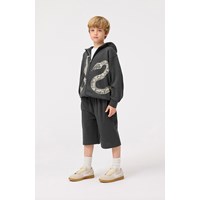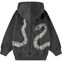 Dunkelgraues Kapuzen-Sweatshirt mit Reißverschluss aus weicher Baumwolle und gerippten Bündchen und Saum. Das Sweatshirt hat eine oversize Passform und ist ohne Seitennähte gefertigt, damit das Schlangenmuster schön um den Körper herum verlaufen kann. Kombinieren Sie es mit passenden Shorts für ein komplettes Set.