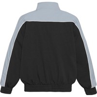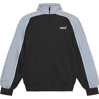 Mex ist eine schwarze Trainingsjacke mit hellblauen Ärmeln und einer schmalen weißen Paspel. Die Jacke hat vorne einen Reißverschluss. Kombiniere die Jacke mit einer passenden Hose für einen coolen und sportlichen Look.