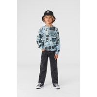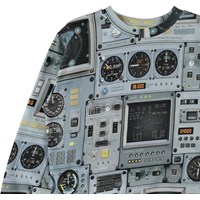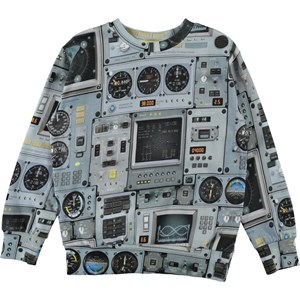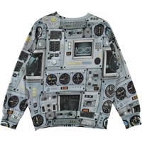 Mik ist ein hellblaues Sweatshirt mit Allover-Print des Cockpits eines Raumschiffs.
