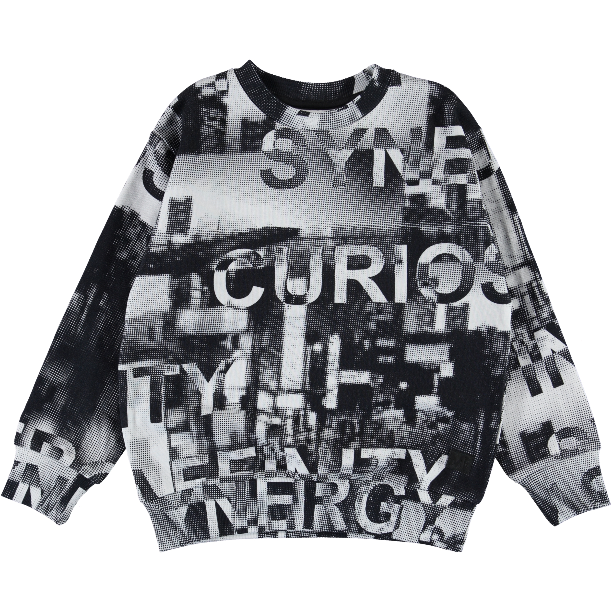 Mik ist ein graues Sweatshirt mit Textdruck. Kombiniere Mik mit passenden Shorts.