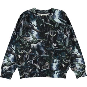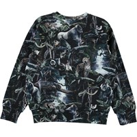 Mik ist ein Sweatshirt mit Druck von Dschungeltieren im Dunkeln.