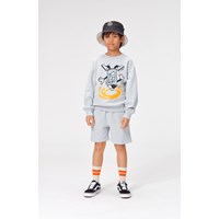 Mik ist ein grau-blaues Sweatshirt mit einer Spraydose, die Breakdance macht.