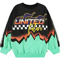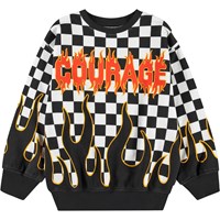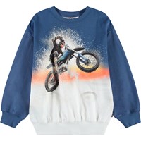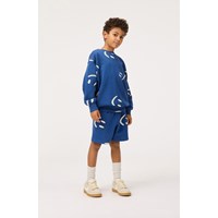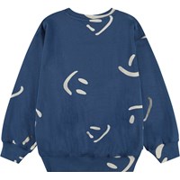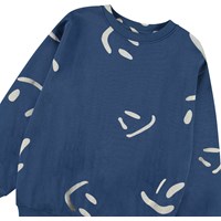 Dunkelblaues Sweatshirt aus weicher Öko-Baumwolle mit gerippten Kanten am Hals, an den Ärmeln und am unteren Saum des Sweatshirts. Das Sweatshirt hat eine lockere Passform mit einem Allover-Druck von lächelnden beigen Gesichtern. Kombinieren Sie es mit passenden Shorts für ein komplettes Set.