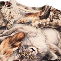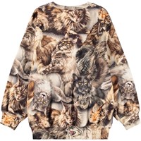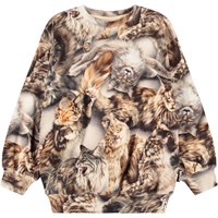 Sweatshirt aus weicher Öko-Baumwolle mit einem braunen Katzenprint. Das Sweatshirt hat gerippte Kanten am Hals, an den Ärmeln und am Saum. Das Sweatshirt hat eine lockere Passform.