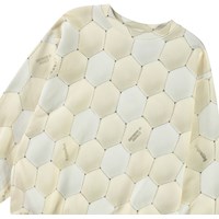Beiges und hellgraues Sweatshirt aus weicher Öko-Baumwolle mit gerippten Kanten am Hals, an den Ärmeln und am unteren Saum des Sweatshirts. Das Sweatshirt hat eine lockere Passform mit einem Allover-Druck des Musters auf einem Fußball in den Farben Hellgrau und Beige.
